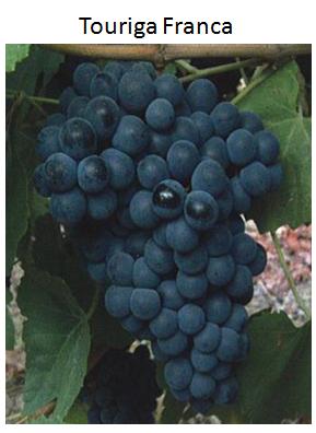 Touriga Franca - A Touriga Franca é uma das castas mais plantadas na zona do Douro e Trás-os-Montes. É considerada umas das melhores castas para a produção de vinho do Porto e do Douro, mas o seu cultivo já foi alargado para as regiões da Bairrada, Ribatejo, Setúbal ou Estremadura.